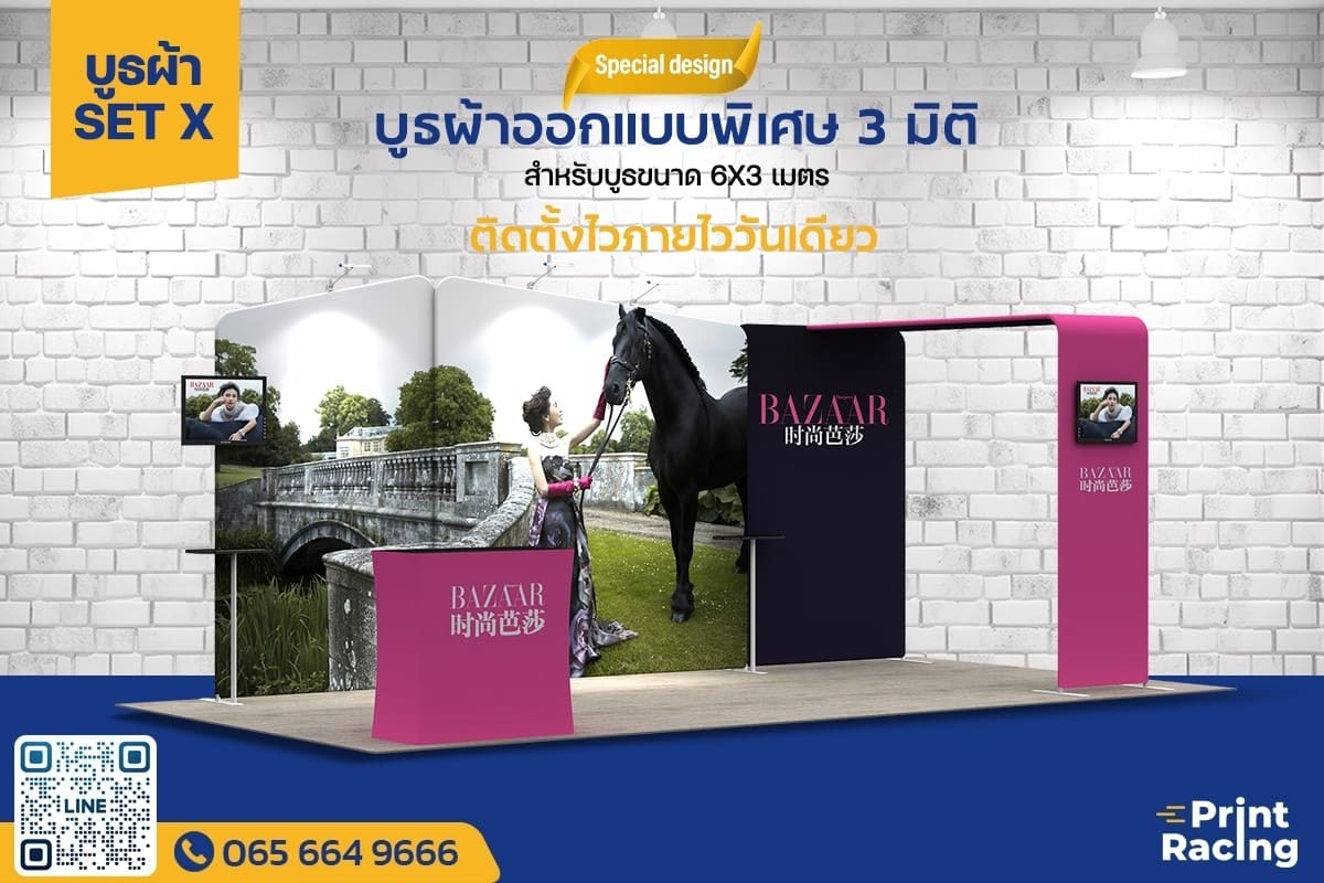 บูธผ้าออกแบบพิเศษ 3 มิติ สำหรับบูธ ขนาด 6x3 เมตร